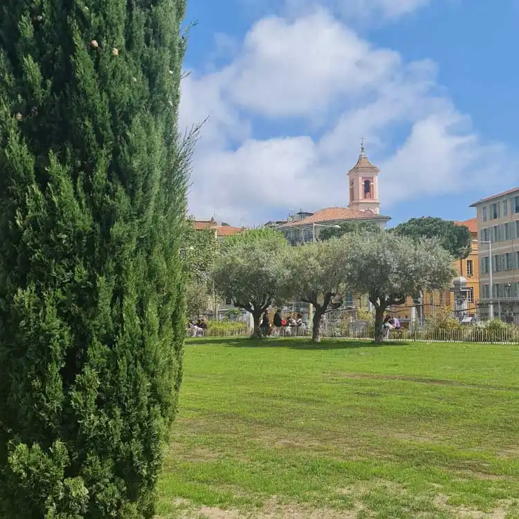 La Coulée verte est située à l’emplacement de l’ancienne gare routière et des jardins suspendus. Elle longe le vieux Nice de manière à mettre en valeur ses façades colorées et retrace symboliquement le trajet du Paillon enterré en 1972.